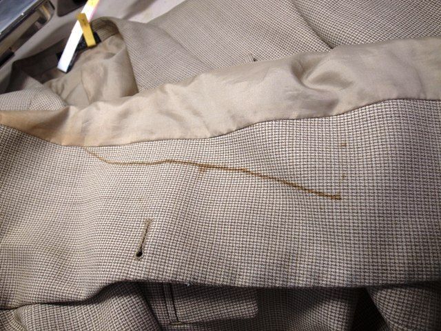どんなシミが、どんな素材について、現在の生地の状態はどうか?
